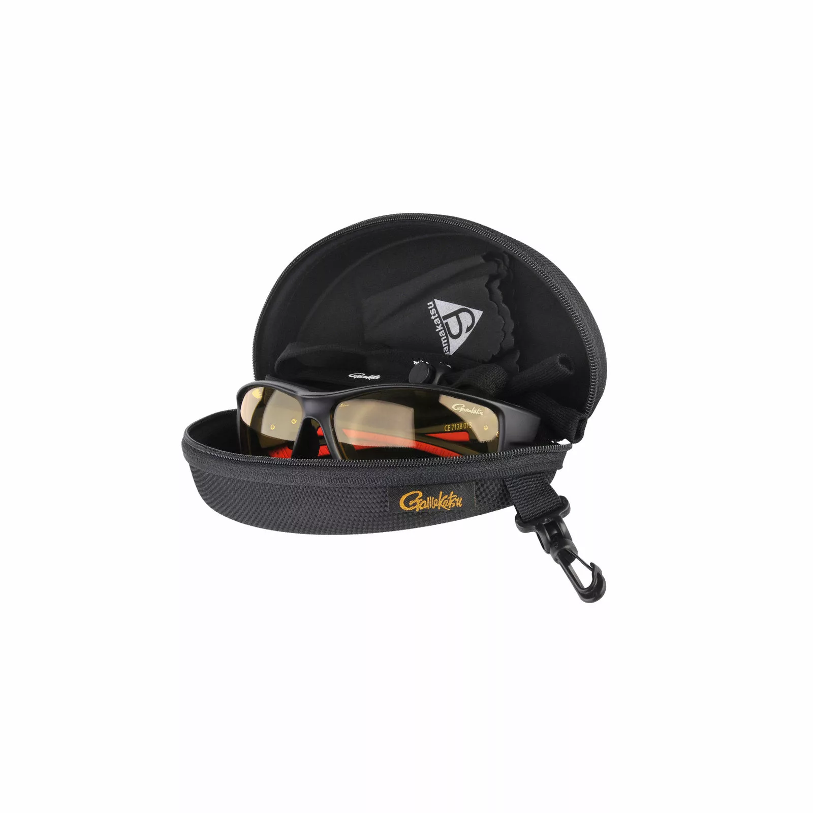 De Gamakatsu G-glasses zonnebrillen worden geleverd in een stevige, drijvende box voorzien van musketon, een brillenkoord en een microfiber reinigingsdoekje.